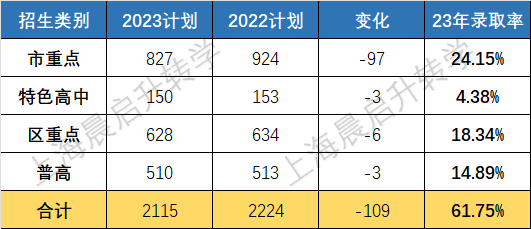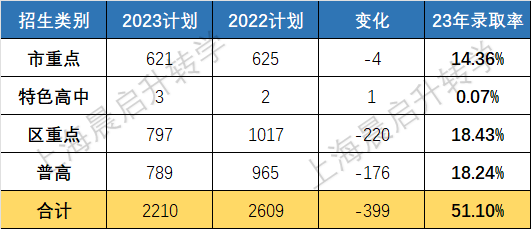 金山区23年中考的招生计划也是缩招。由于地理位置的原因,金山的市重录取率要比部分市区高,且录取分数线也比不少市区的市重点录取分数线高。
