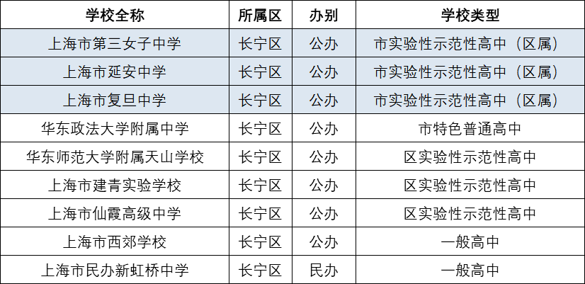 1、长宁区高中汇总