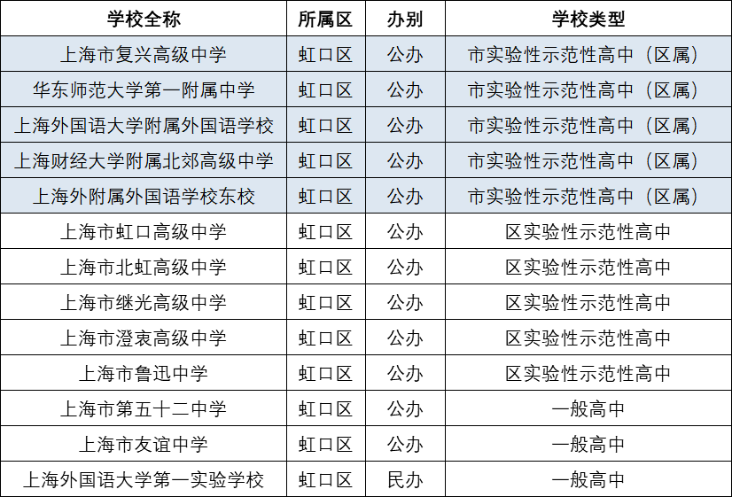1、虹口区高中汇总