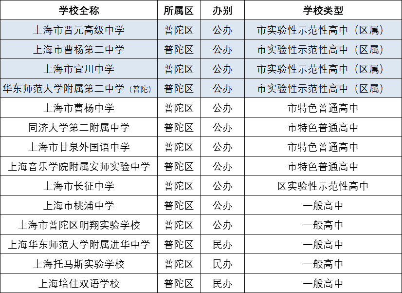 1、普陀区高中汇总
