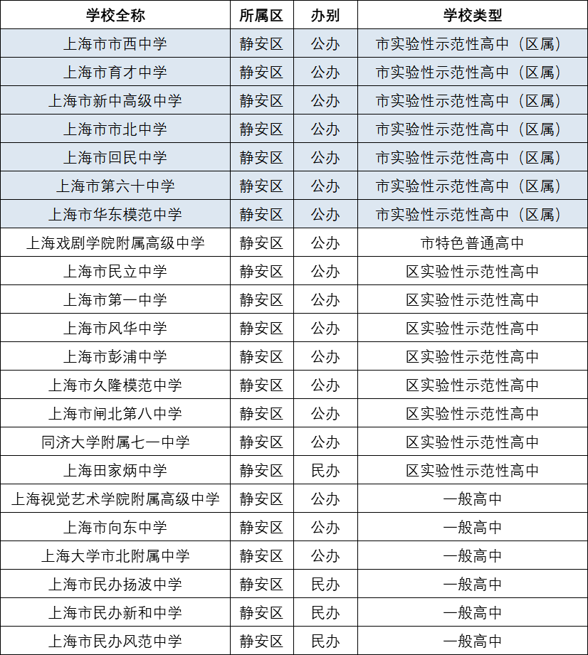 1、静安区高中汇总