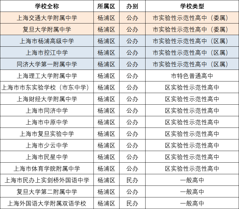 1、杨浦区高中汇总