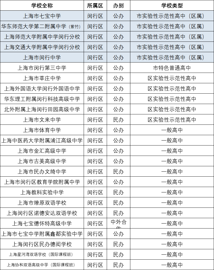 1、闵行区高中汇总
