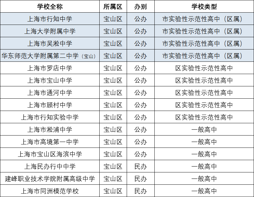 1、宝山区高中汇总