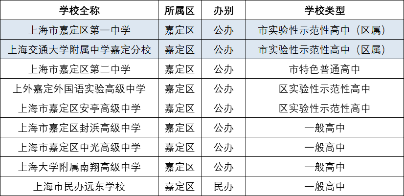 1、嘉定区高中汇总