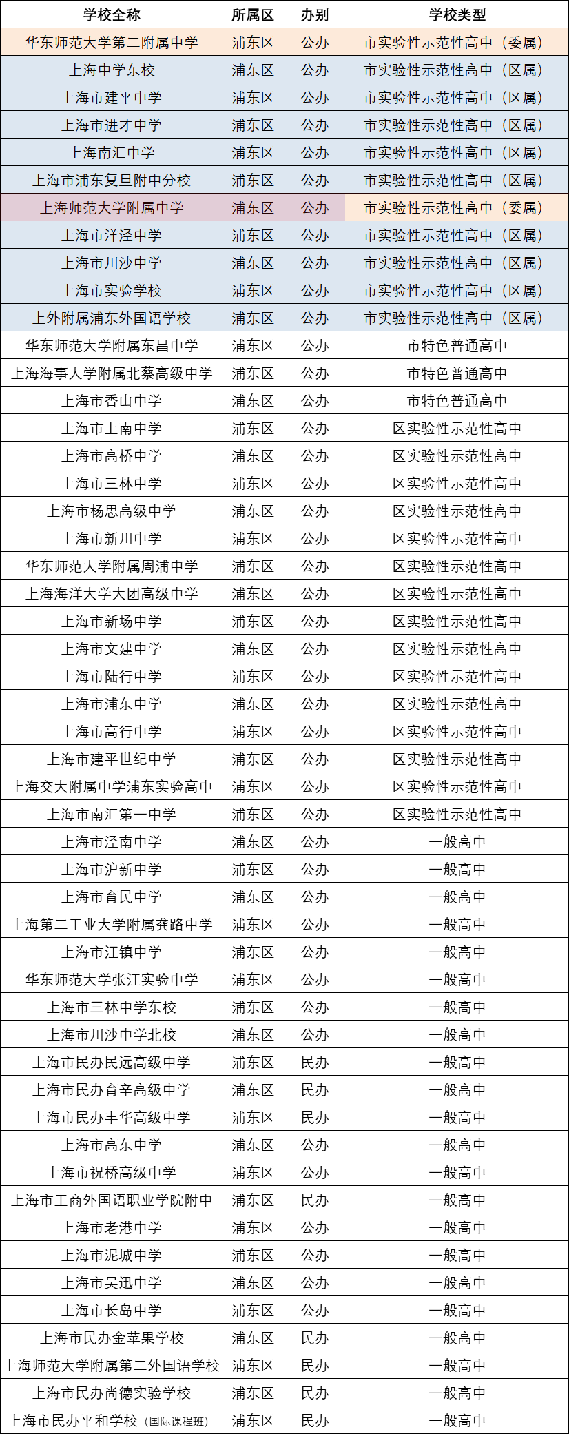 1、浦东新区高中汇总