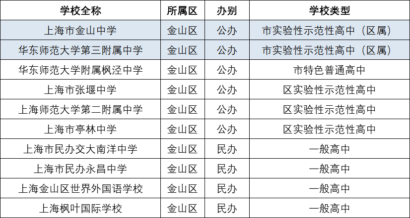 1、金山区高中汇总