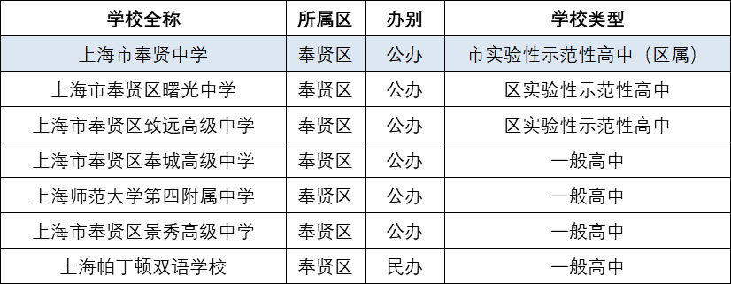 1、奉贤区高中汇总