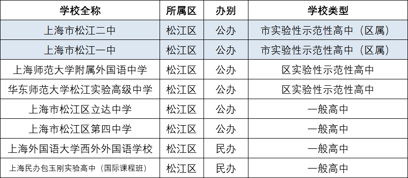 1、松江区高中汇总