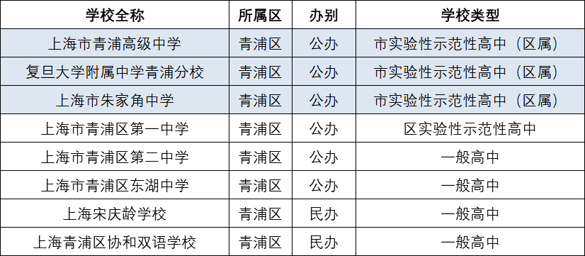 1、青浦区高中汇总