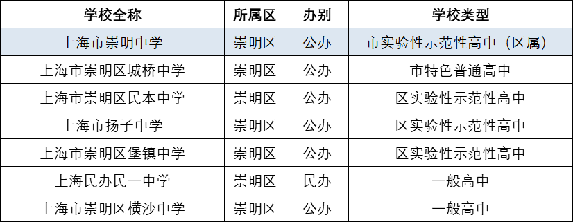 1、崇明区高中汇总