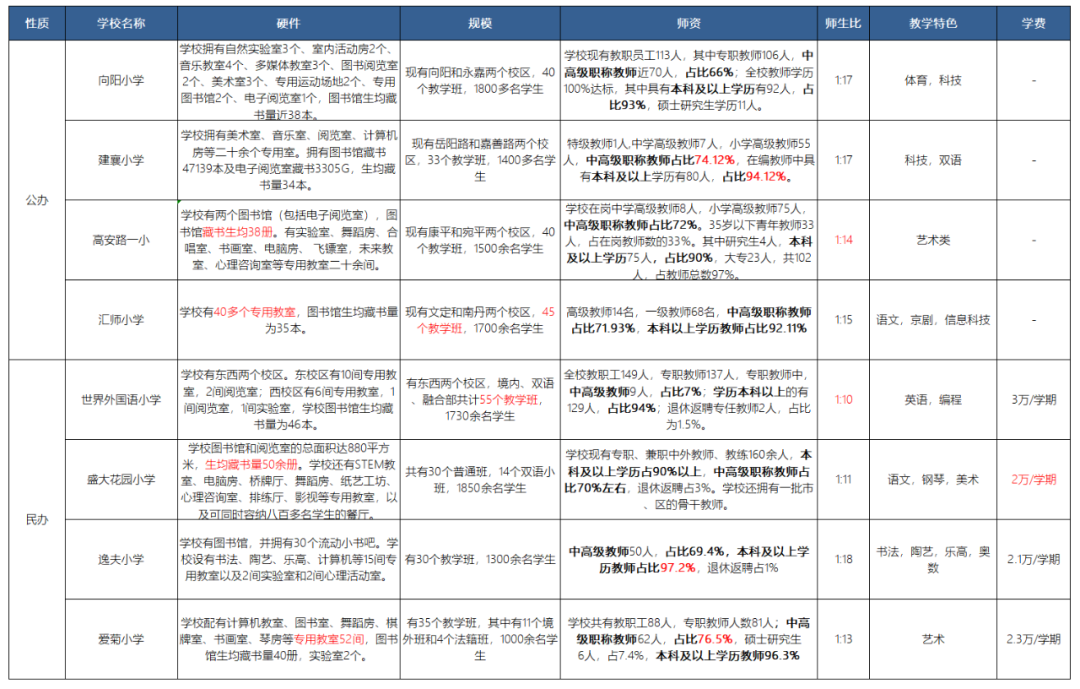 下面,我们从徐汇区小学、初中、高中各阶段的学校为大家分析资源