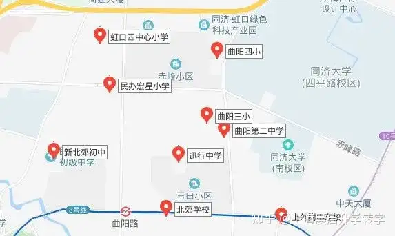 曲阳路街道周边的小学有虹口四中心小学、曲阳三小、曲阳四小;