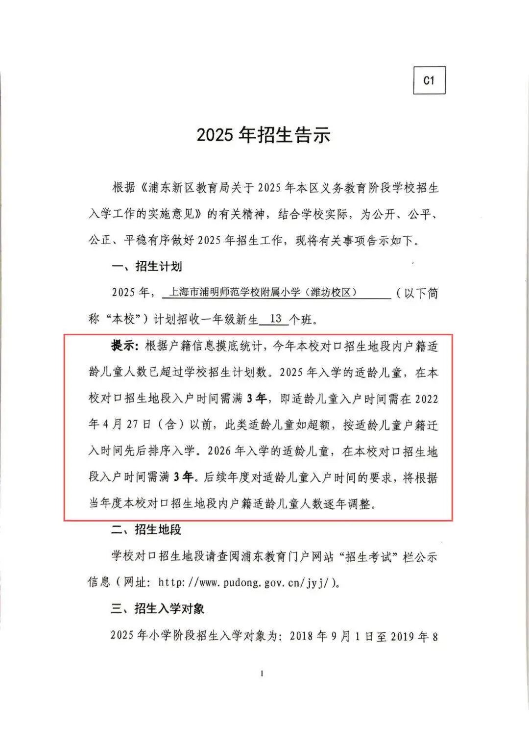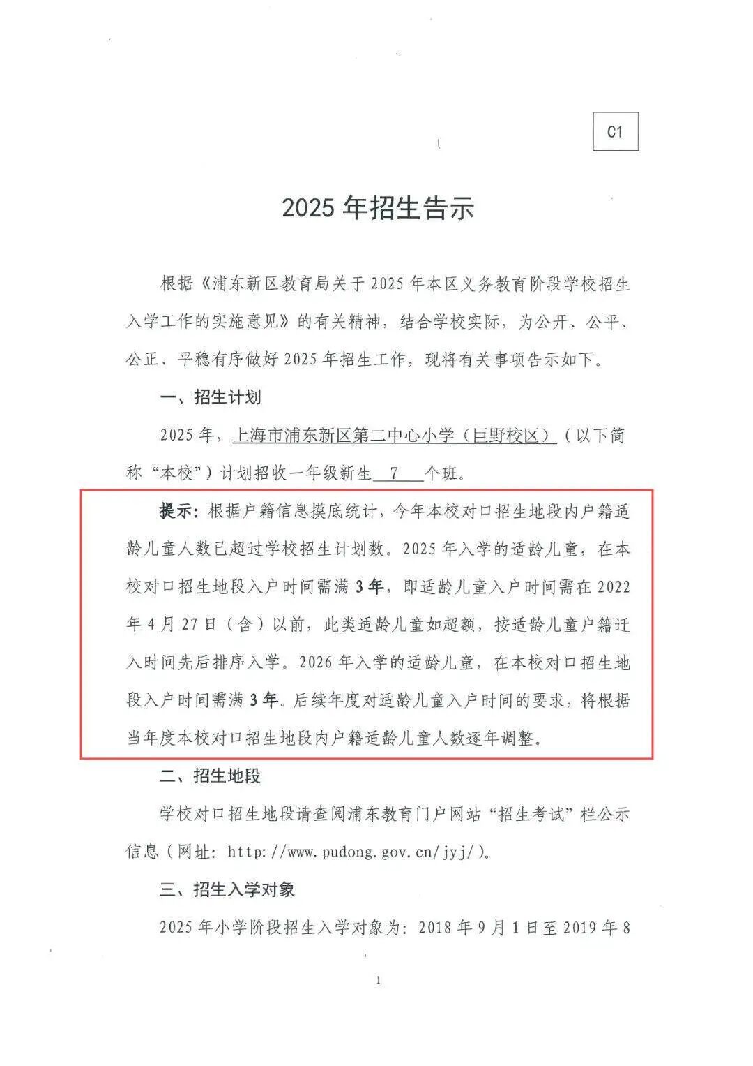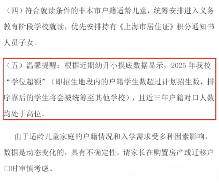 亮红灯!上海已有46所公办学校发布2025超额预警!还有学校明确入户不满3年直接统筹!部分已预告2027年入学门槛......