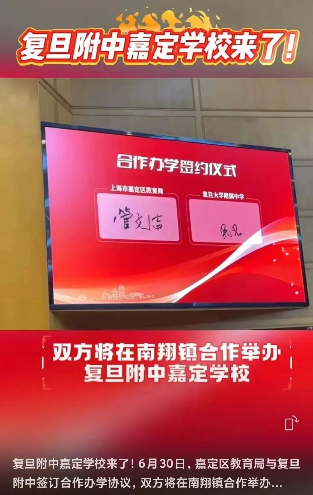 嘉定区这两年在高中建设方面力度也是空前的,除了上师嘉定已经借址办学外。今年,嘉定区教育局还官宣与复旦大学附属中学签订合作办学协议,双方将在南翔镇合作举办复旦附中嘉定分校!