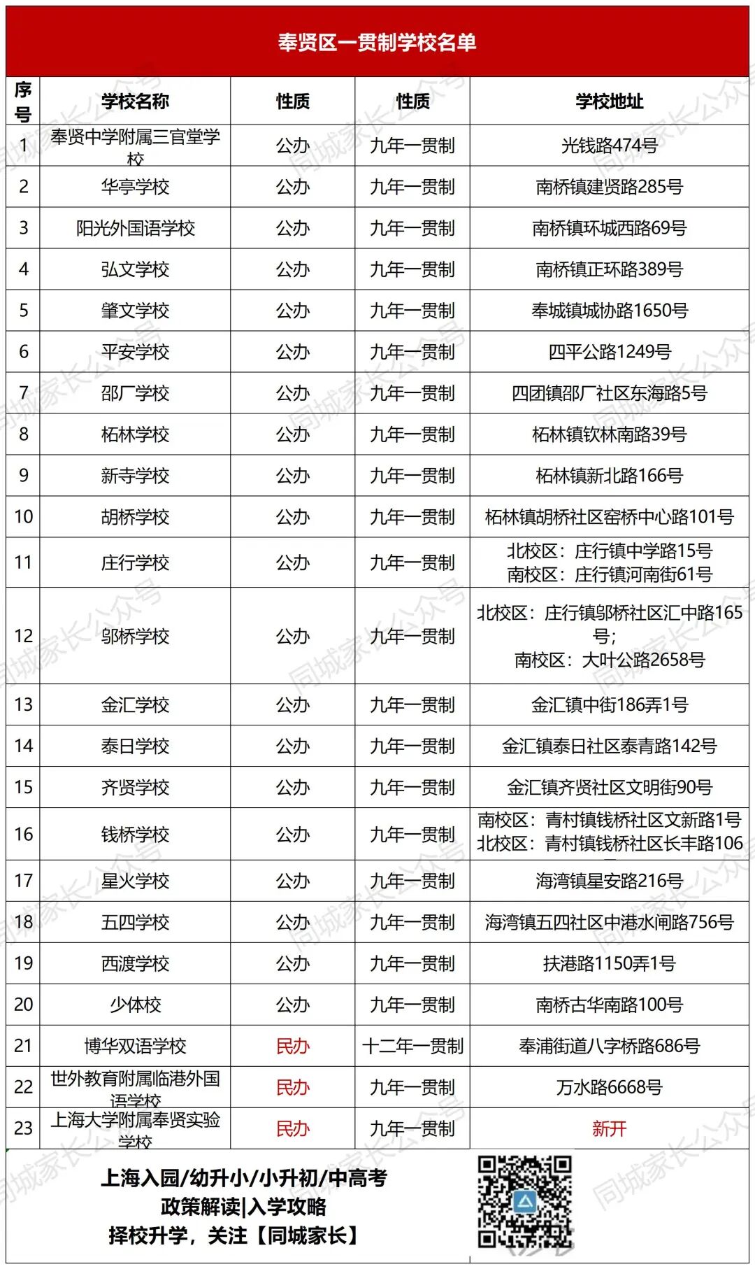 2025年,奉贤区目前有23所一贯制学校,公办20所,民办3所。一贯制学校布局