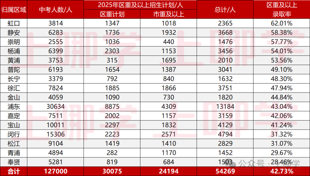 2025年上海中考录取率出炉!这几个区考四校有优势!