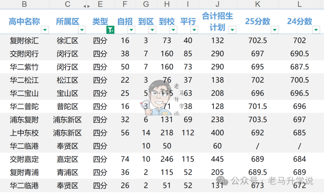 复附系3所,交附系2所,华二系5所,上中系1所(上中东校是否是四分这个大家评价不一,反正是有点关系,大家不用纠结)