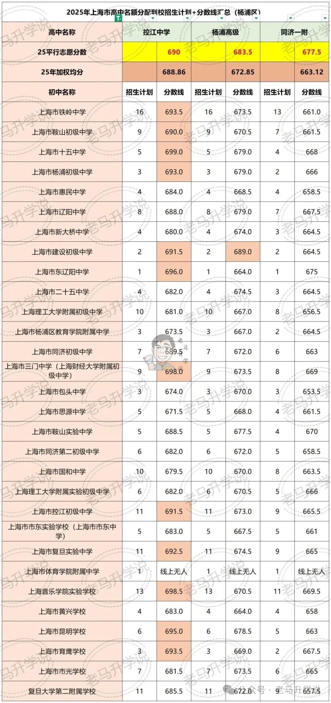 所以,和徐汇一样的结论,目标四校和控江,用高分说话,中等生还是多关注杨高和同一附。