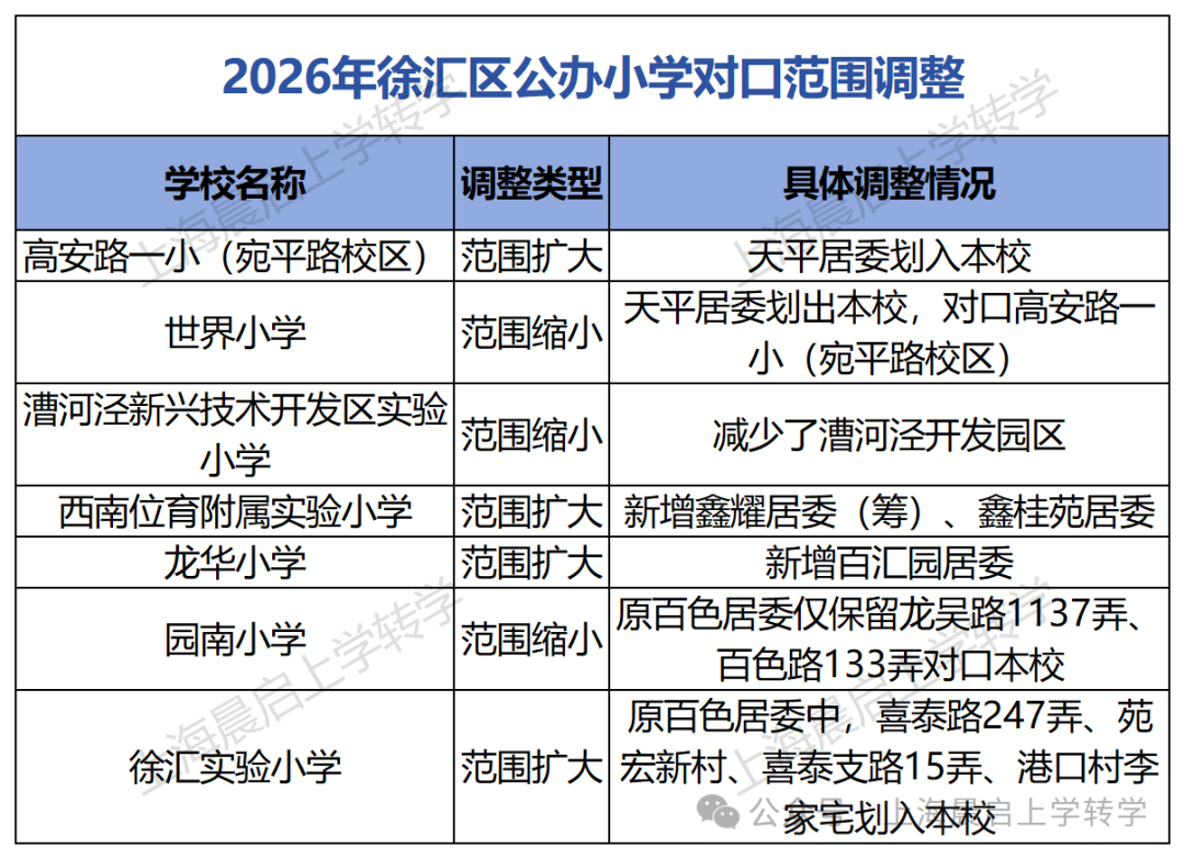 学区变动、招生规模变化?2026徐汇区幼升小/小升初详细解读!