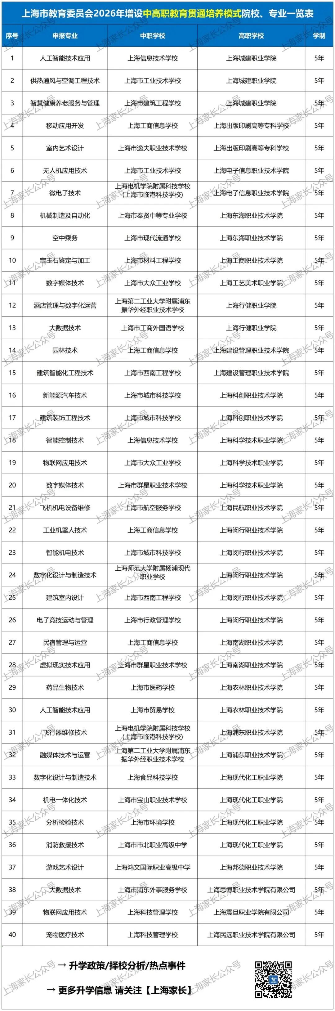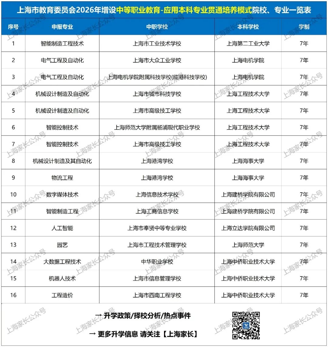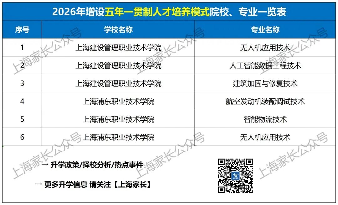 最新!2026上海中本、中高职、五年一贯制共新增62个专业!部分专业需面试,合格后方可报考!还有这所高校首年招生……