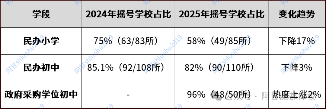 2024-2025上海民办摇号占比对比