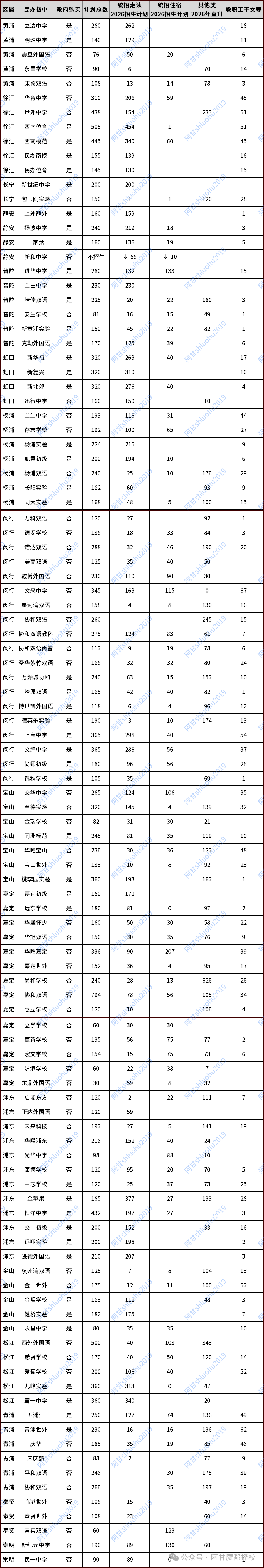 2026上海16区民办初中招生计划